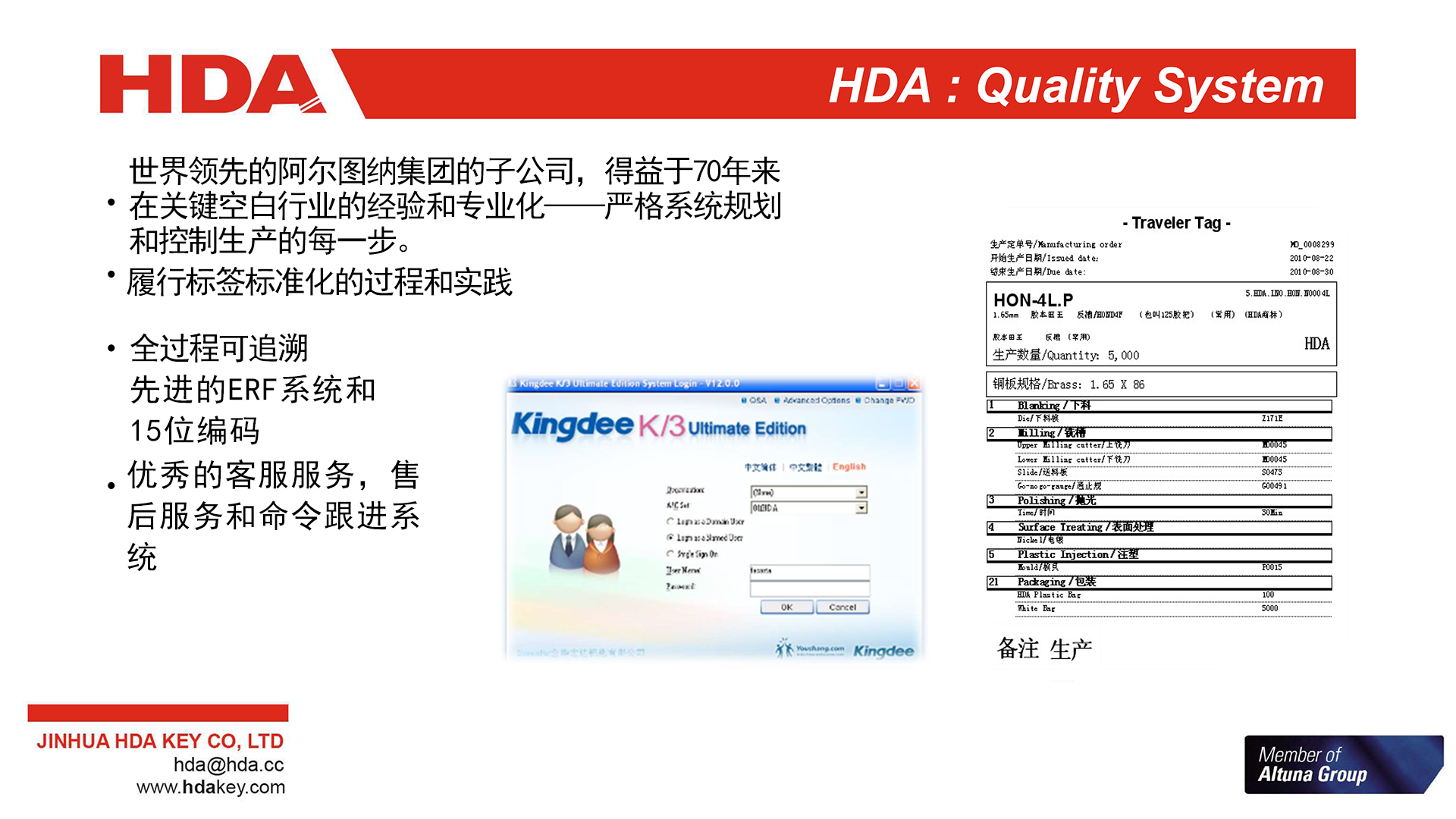 2005年,與歐洲三大鑰匙坯生產(chǎn)企業(yè)之一的西班牙JMA集團成立合資公司--金華HDA鑰匙有限公司。 2007年,轉(zhuǎn)為西班牙JMA集團獨資子公司。